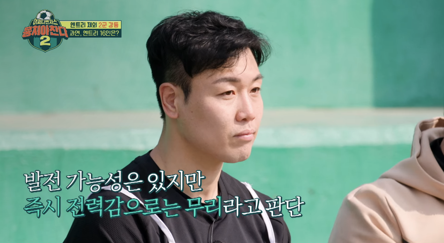 무튼, 매주 경기력을 보고 다음주의 선발명단이 결정! 이동국 코치도 말을 거들었는데요. 프로축구팀에서도 하루전에 함께 훈련을 하더라도 내일 엔트리 결정이 난다고 합니다. 진짜 경쟁이 도입되며 예능보다는 다큐, 스포츠가 더 커질 거 같은 분위기입니다