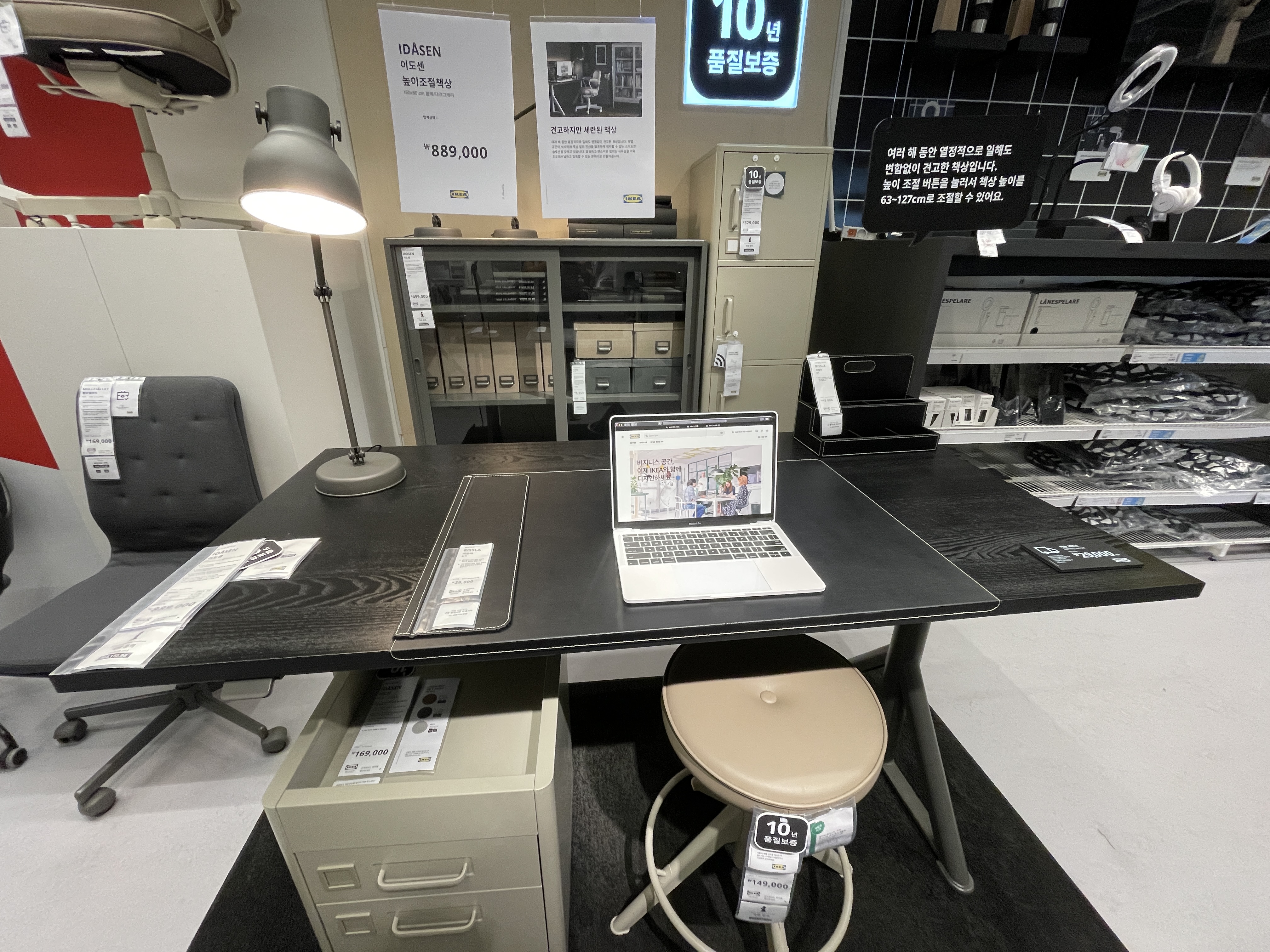이케아에 구경갔다가 처음으로 모션데스크의 존재를 알게되었습니다. 다만 가격이 비싸서 고민하고 있었는데요. 서서 일하는 것에 대한 장점이 있겠다 싶어서 데스커의 스탠딩 데스크를 구매하여 일을 하기도 하였는데요~ 발이 아파서 자리를 바꿀려고 하면 컴퓨터를 옮겨야 하니 생각보다 귀찮았습니다. 그래서 모션데스크를 사야지라고 결심! ㅋㅋ