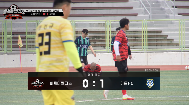 이번 화에서는 청춘FC 출신 이웅재 선수가 감독으로 있는 이든FC와의 축구시합이 있었습니다. 결과는 0:1 패배. 아직 100%의 전력이 아니며, 입단테스트 중인 선수들도 있었기에~ 경기력은 아쉬웠습니다. 하지만 상대인 이든FC도 탄탄한 팀이었습니다.