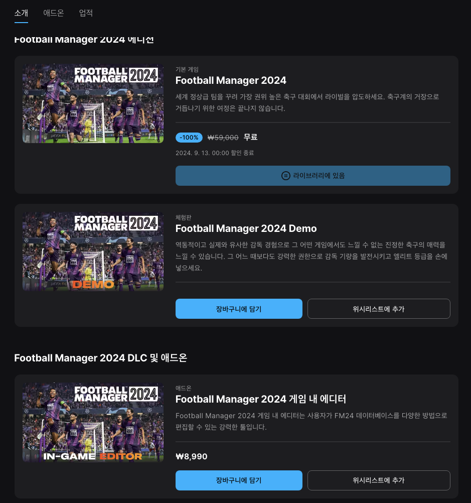 FM2024 에픽게임즈 무료!(~9/13까지) FM2026까지 존버