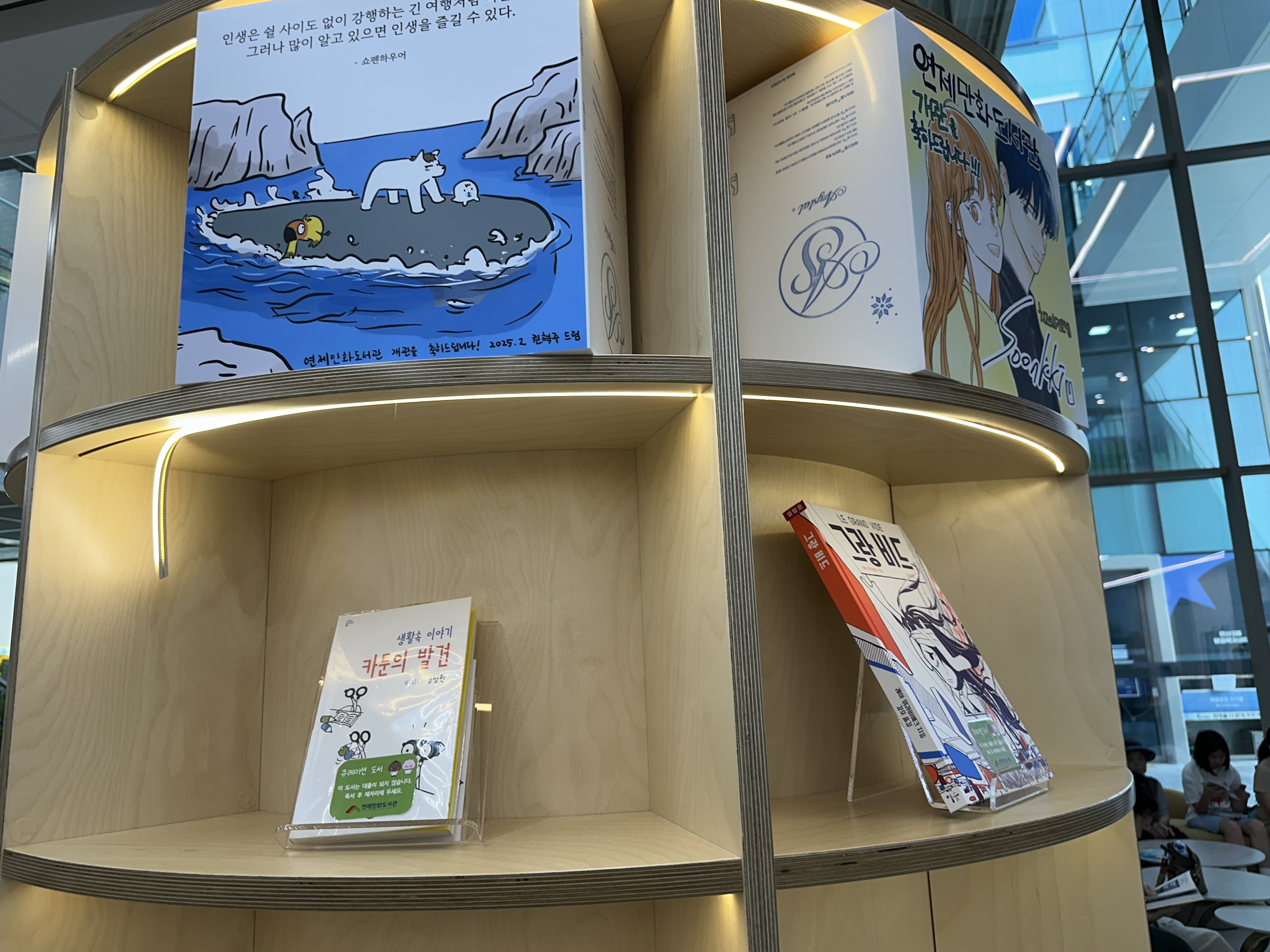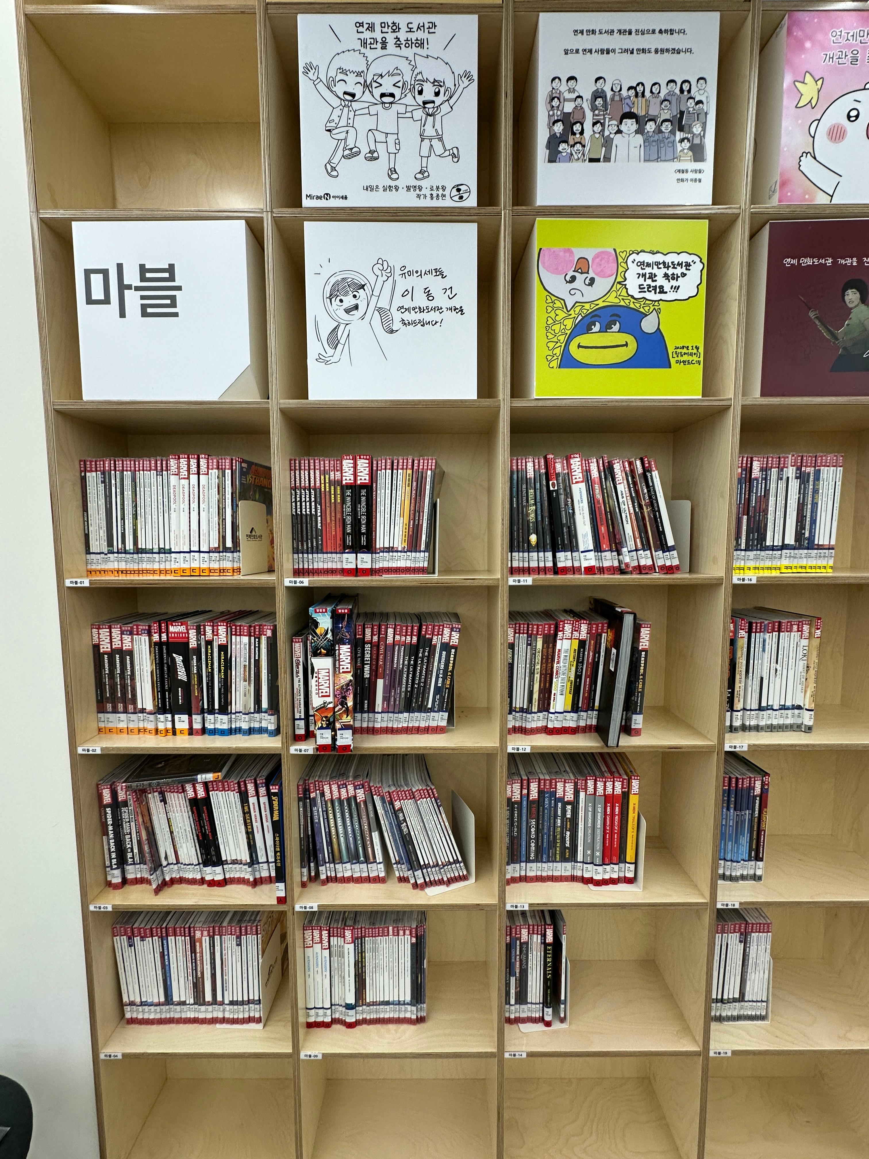 - 2층: 청소년~성인을 위한 일본 만화, 웹툰, 그래픽노블(마블,DC) 등 다양하게 구성